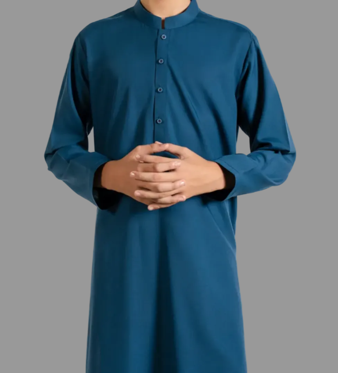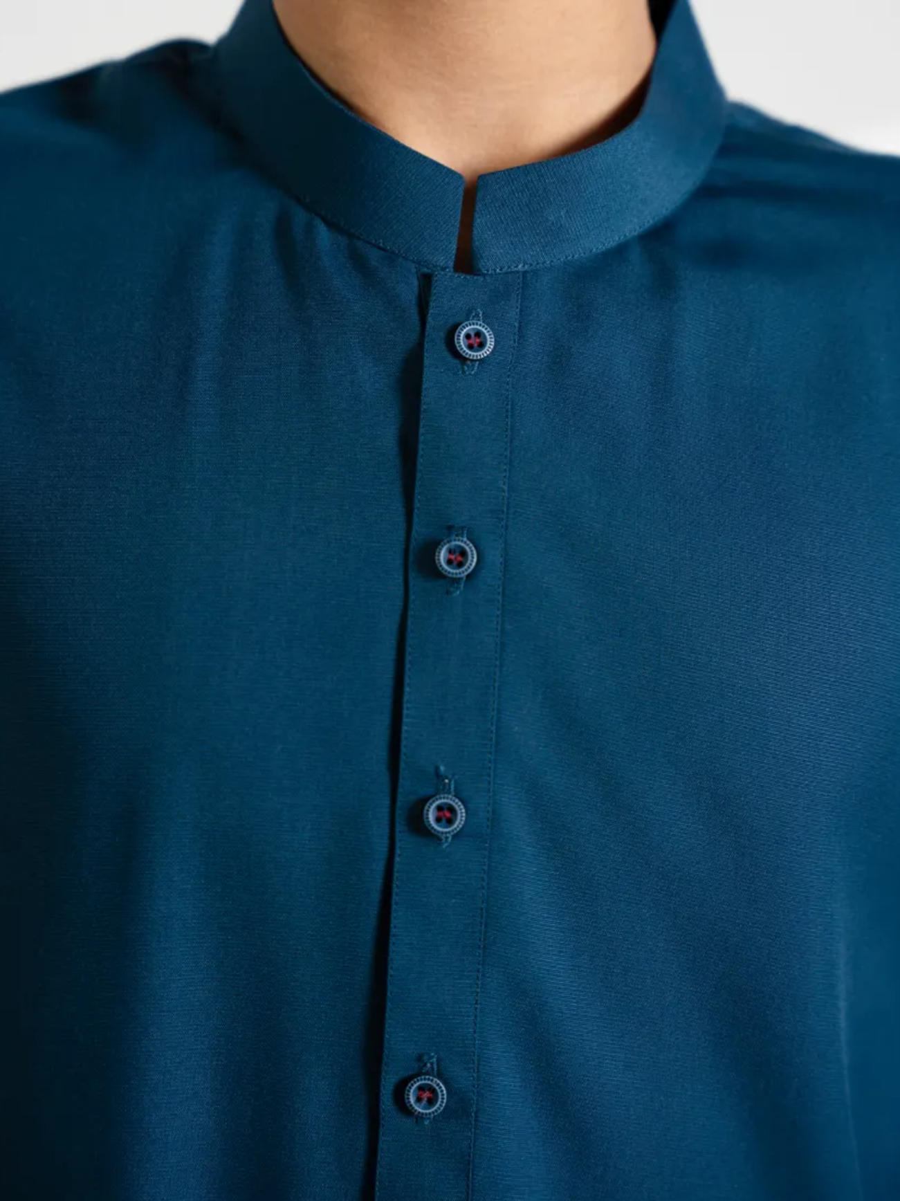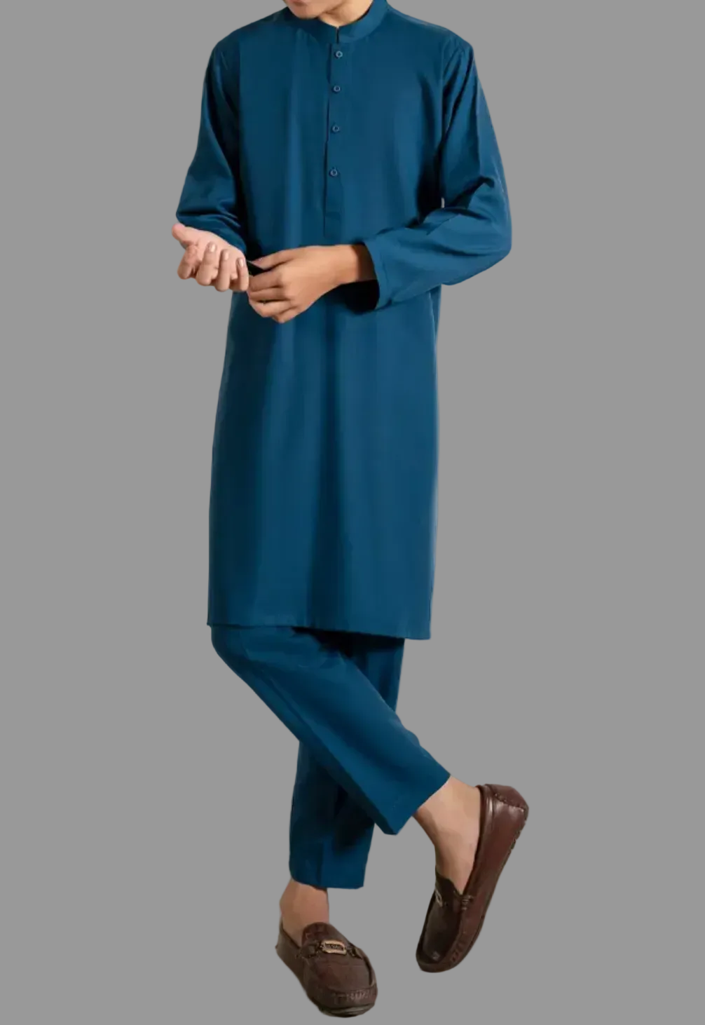 Designed with a refined touch, this blue blended kurta trouser set offers a clean look that's ideal for small events, meetups, or evening wear.