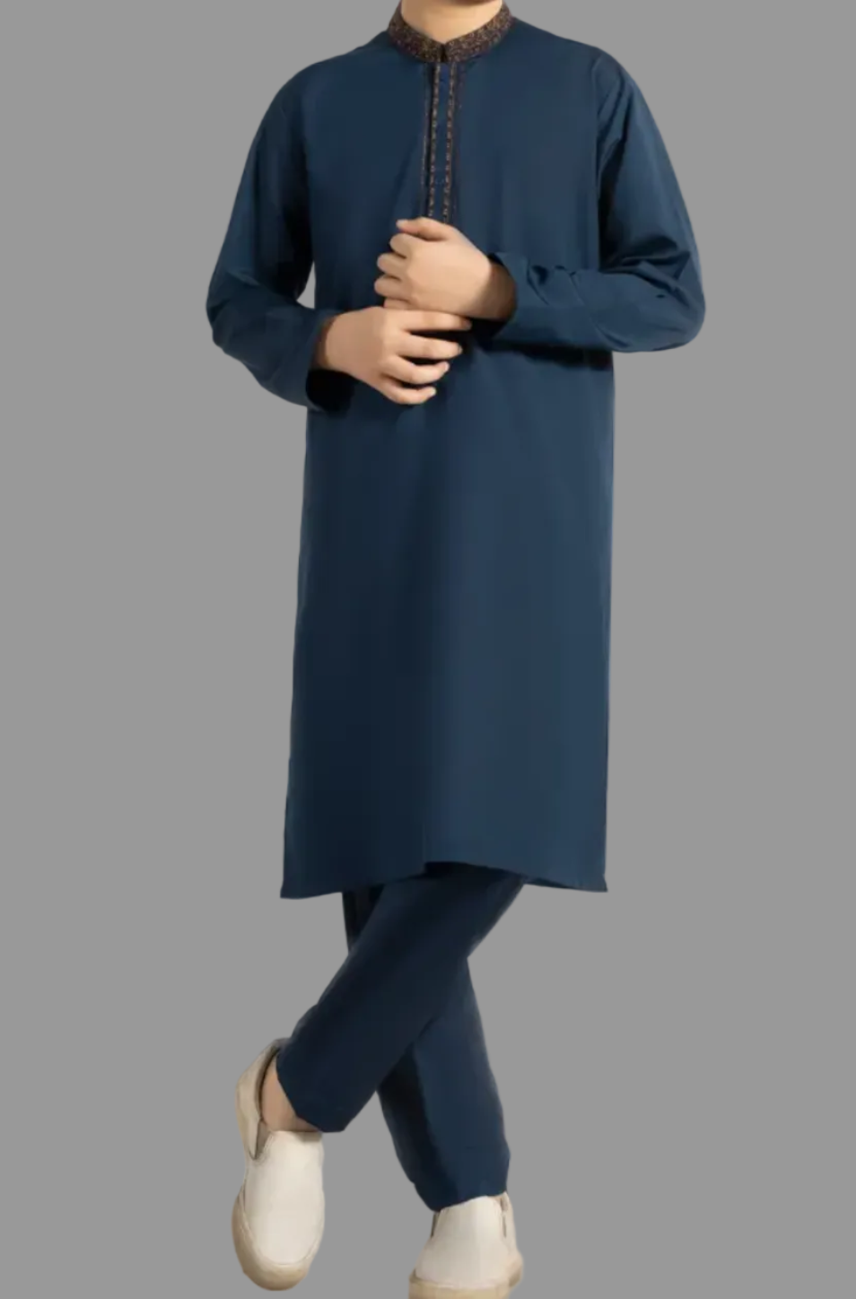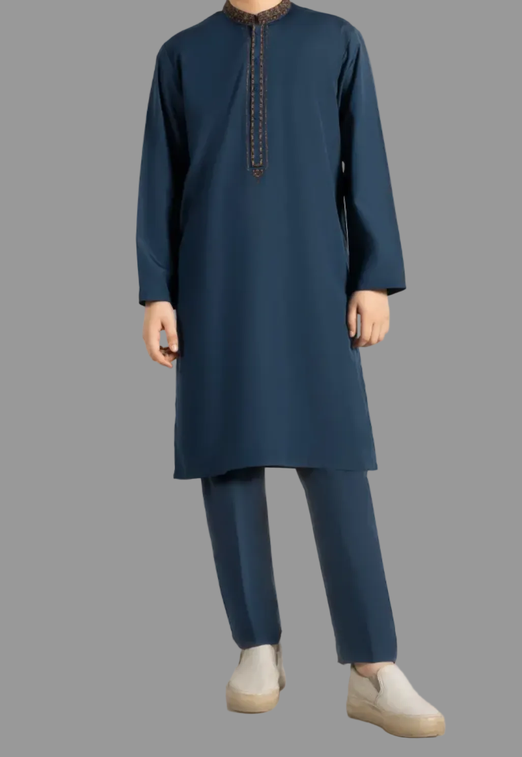 Designed for a sharper, more structured appearance, this Teal Blended Kurta Trousers set offers a modern fit with clean lines. The kurta features subtle detailing, while the straight-cut trousers ensure a neat silhouette.