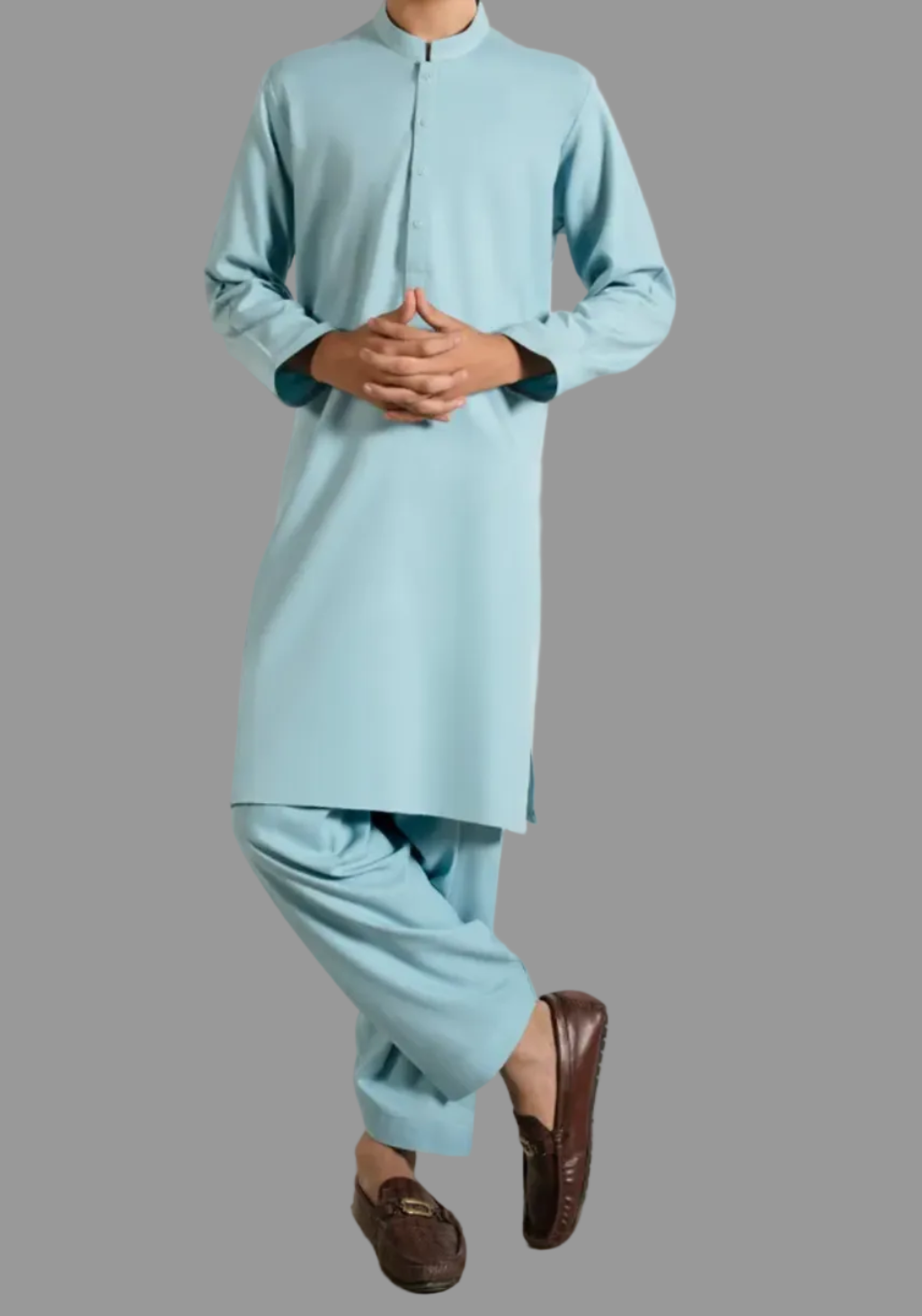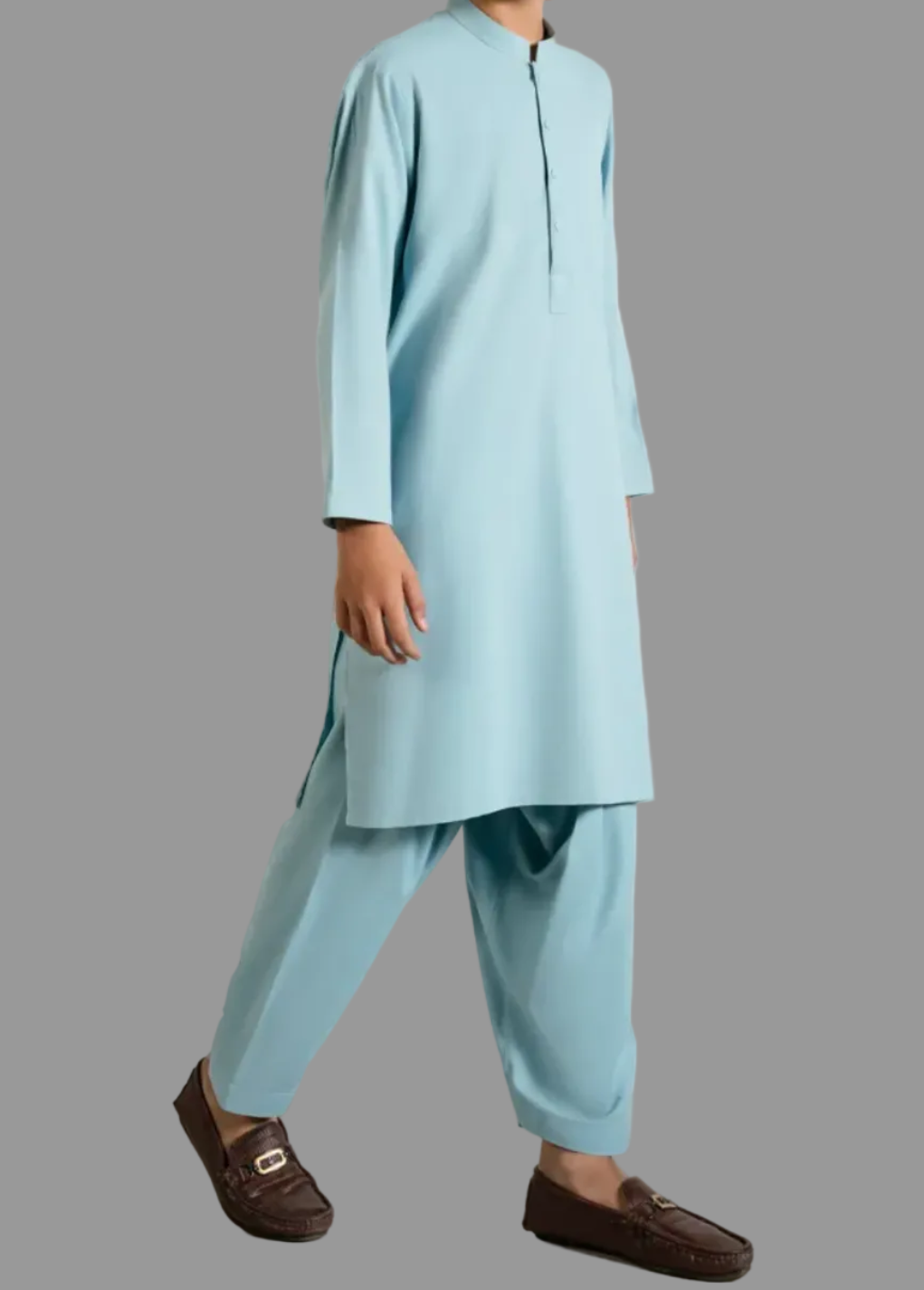 A comfortable and classic Sky Blue Blended Kameez Shalwar made for light Boys. Easy to wear perfect for all day use. Neat stitching and a smart look keeps your little one looking Handsome.