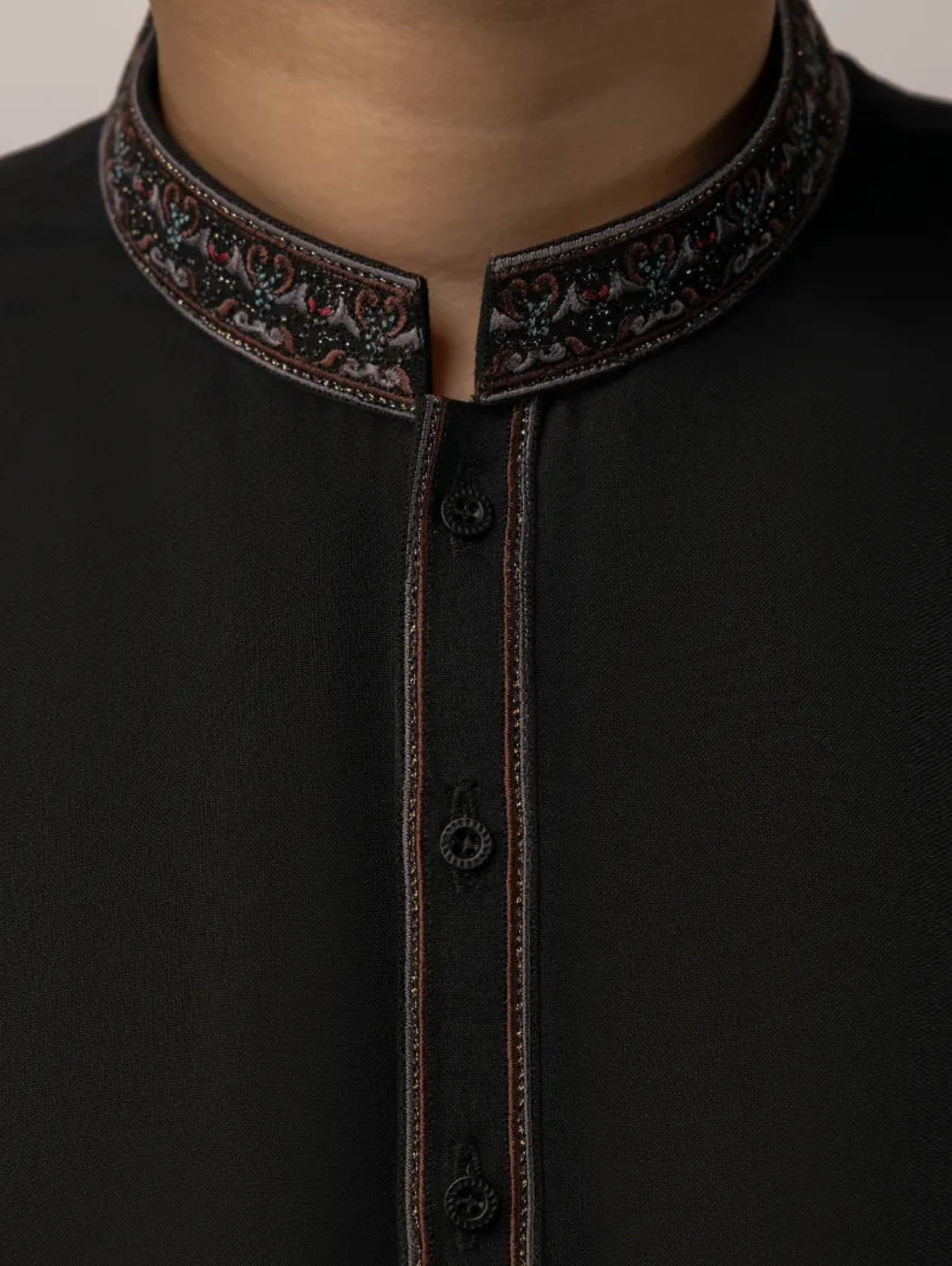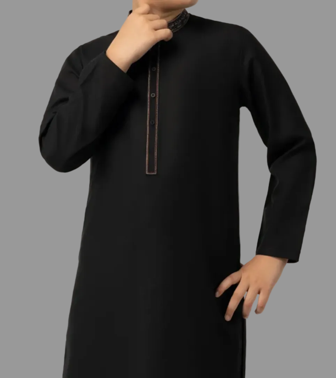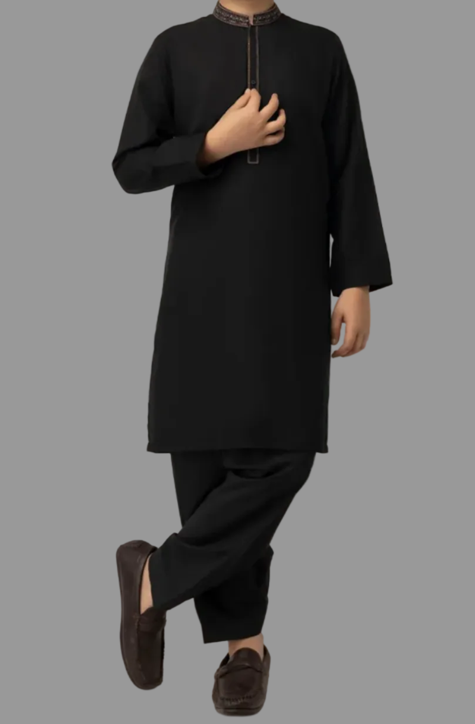 Designed with neat finishing and clean cuts, this black semi-formal kameez shalwar gives a tidy and smart appearance. The straight fit and fine stitching make it a reliable pick for everyday wear or casual occasions.