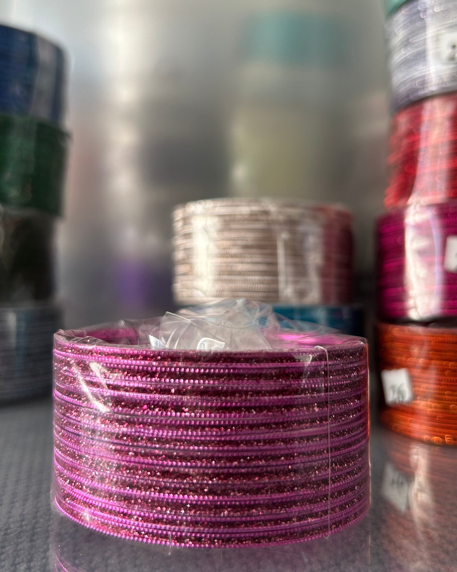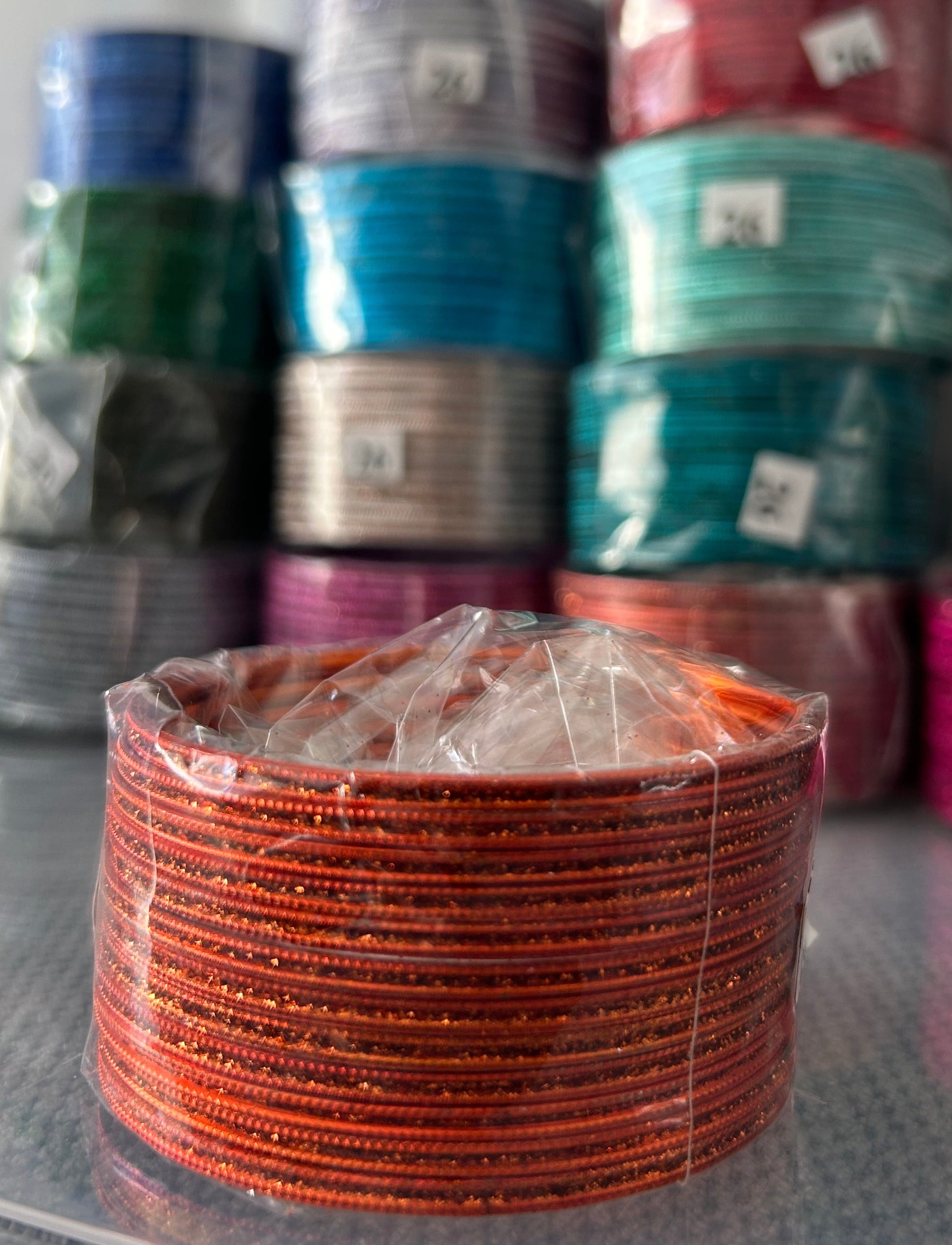 Gorgeous glitter bangles with a dazzling iridescent finish.