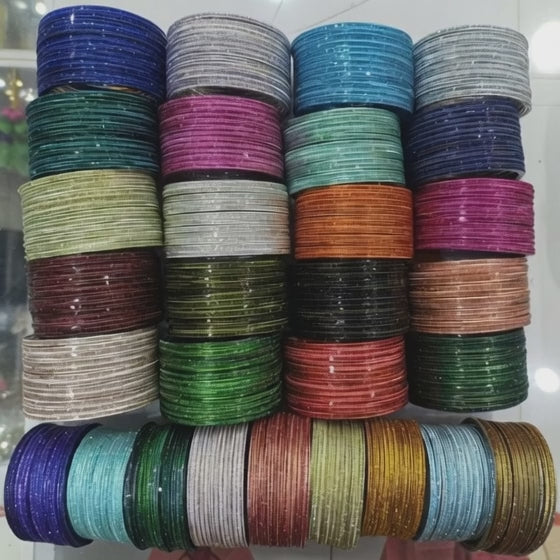 Gorgeous glitter bangles with a dazzling iridescent finish.