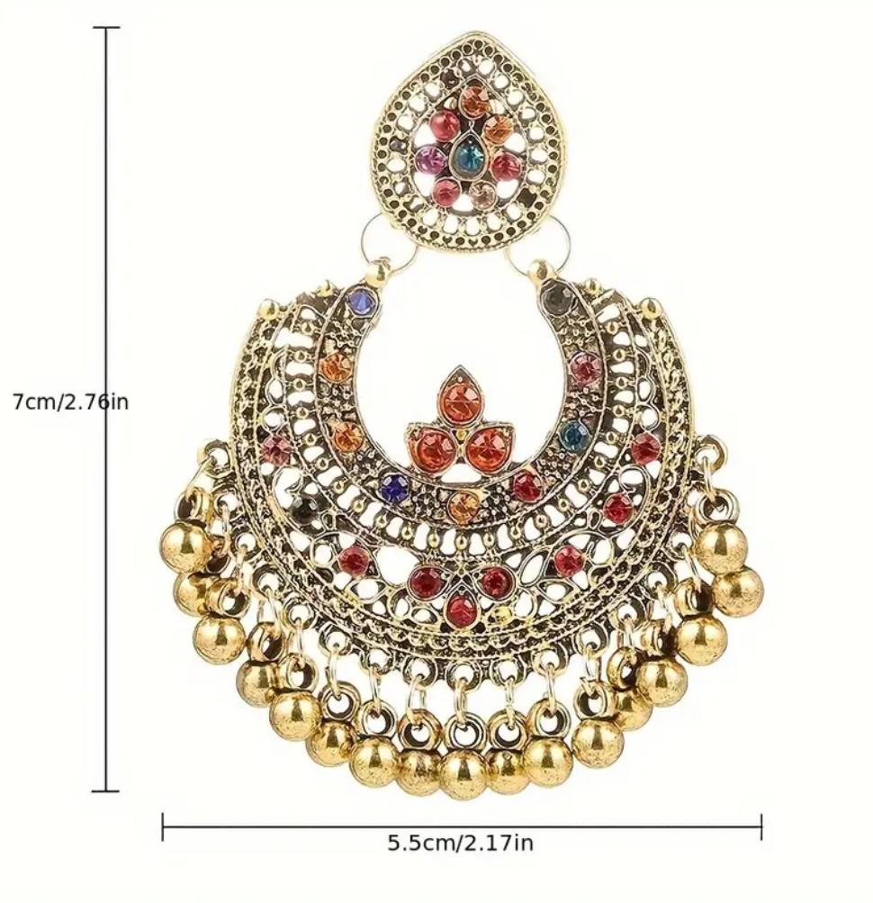 These exquisite earrings feature a timeless chandbali silhouette crafted in a rich gold-tone finish. A graceful fringe of luminous pearl drops adds soft movement and traditional charm, making these earrings a perfect blend of heritage and elegance.
